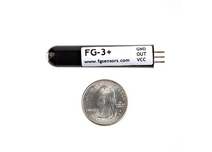 The FGM-X series of devices are very high sensitivity magnetic field sensors operating in the ±50 microtesla range ( ±0.5 oersted). They are simple, essentially three terminal devices, operating from a single +5 volt supply, the connections being ground, +5v and output. The output is a robust 5 volt rectangular pulse whose period is directly proportional to the field strength, (giving a frequency which varies inversely with the field), making it very easy to interface to a computer or micro controller. The typical period swing for the full range of an FGM-3 is from 8.5 μs to 25μs (~120 KHz to ~50KHz), a clear indication of its high sensitivity.