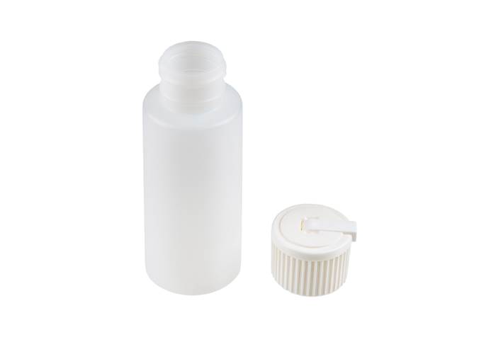 Store and dispense liquids with this refillable 2oz flip top bottle. Made of translucent, impact-resistant HDPE.