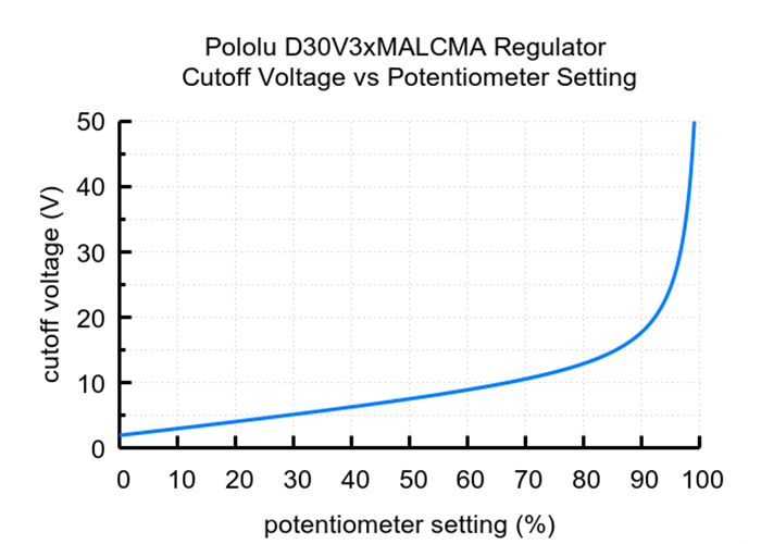 Cutoff voltage settings for the 1.4-7V Fine-Adjust Step-Down Voltage Regulator w/ Adjustable Low-Voltage Cutoff D30V3xMALCMA.