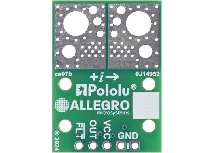The actual current you can pass through the sensor will depend on how well you can keep it cool. The carrier’s printed circuit board is designed to help with this by drawing heat out of the sensor chip. Solid connections to the current path pins (such as with thick soldered wires or large, tightly-secured lugs) can also help reduce heat build-up in the sensor and carrier board.