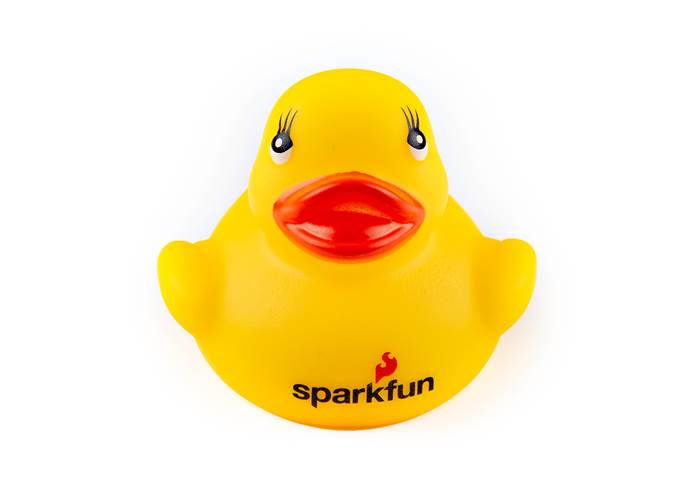 The SparkFun Debugging Duck is a flexible, exceedingly buoyant, clearly fabricated, cognitive device for hardware debugging. Guaranteed to reduce debugging times and increase productivity[2] and conversation[3]. Before you ask your coworker, ask your Debugging Duck!