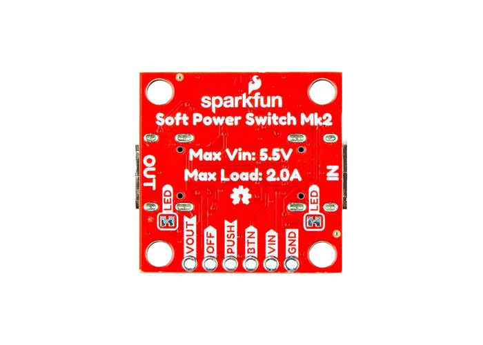 The SparkFun Soft Power Switch is a passive, hard on/off switch with software feedback and control. In other words, it's like a laptop on/off switch. A simple press will turn the system on. Another press can (with MCU intervention) turn off the system.