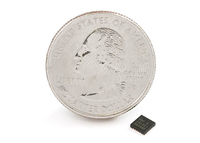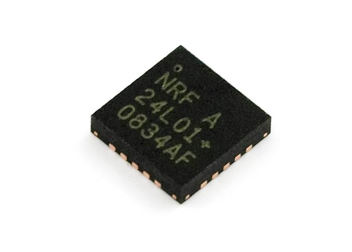 Nordic Semiconductor nRF24L01+. Transceiver chip operating in the 2.4GHz band. Take all the coolness of the nRF2401A and add some extra pipelines, buffers, and an auto-retransmit feature - very nice! The improved '+' version of the nRF24L01 includes more features and better range!