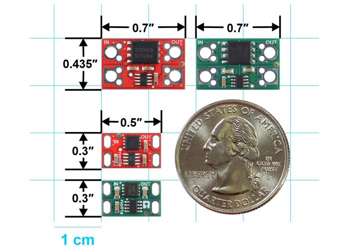 | 17 A | < 3 mΩ | 0.435″×0.7″ | $7.95 | #5359 | ||