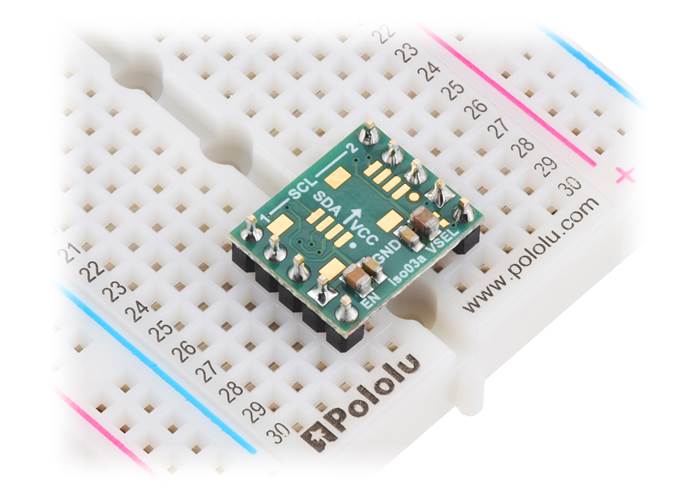This module enables galvanically isolated (electrically isolated), bidirectional communication between two I²C devices while providing isolated and regulated 5 V or 3.3 V power at up to 200 mA. This isolation means that incorrect connections or bad voltages on one side cannot propagate through to damage the device connected to other side. The signal isolation is achieved with the TI ISO1640B, which supports bidirectional data transfer up to 1.7 MHz. See the ISO1640BDR datasheet for more information.