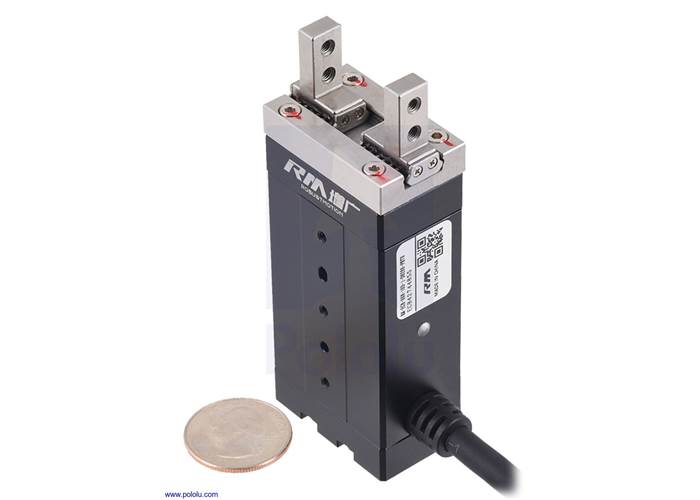 The gripper can cover its full 6 mm stroke length in under 0.1 s. In addition to the fully open and fully closed extremes, the simple PNP-type PLC interface offers two preset intermediate positions (at 2 mm and 4 mm) that are achievable with ±0.02 mm repeatability, and the grip strength can be controlled by selecting from four preset force levels up to 60 N. The RS-485 interface gives more precise control of the position (0% to 100%) and force (25% to 100%). See the RM-EGB user’s manual (2MB pdf) for more information.