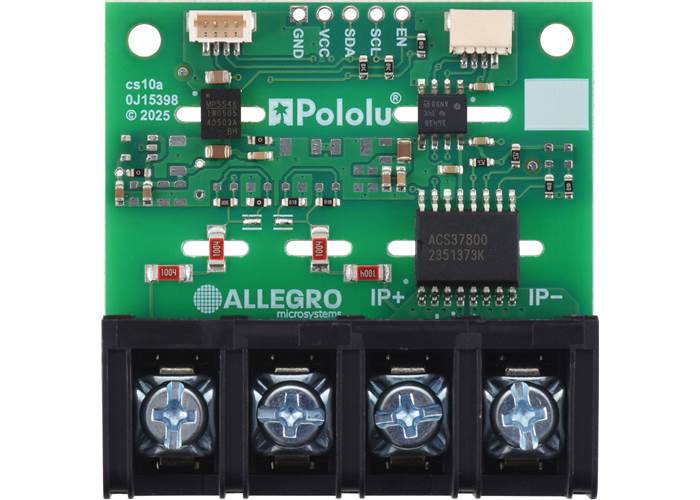 We are offering these breakout boards with support from Allegro Microsystems as an easy way to use or evaluate their ACS37800KMACTR-030B3-I2C isolated power monitoring IC; we therefore recommend careful reading of the ACS37800 datasheet (4MB pdf) before using this product. The following list details some of the sensor’s key features: