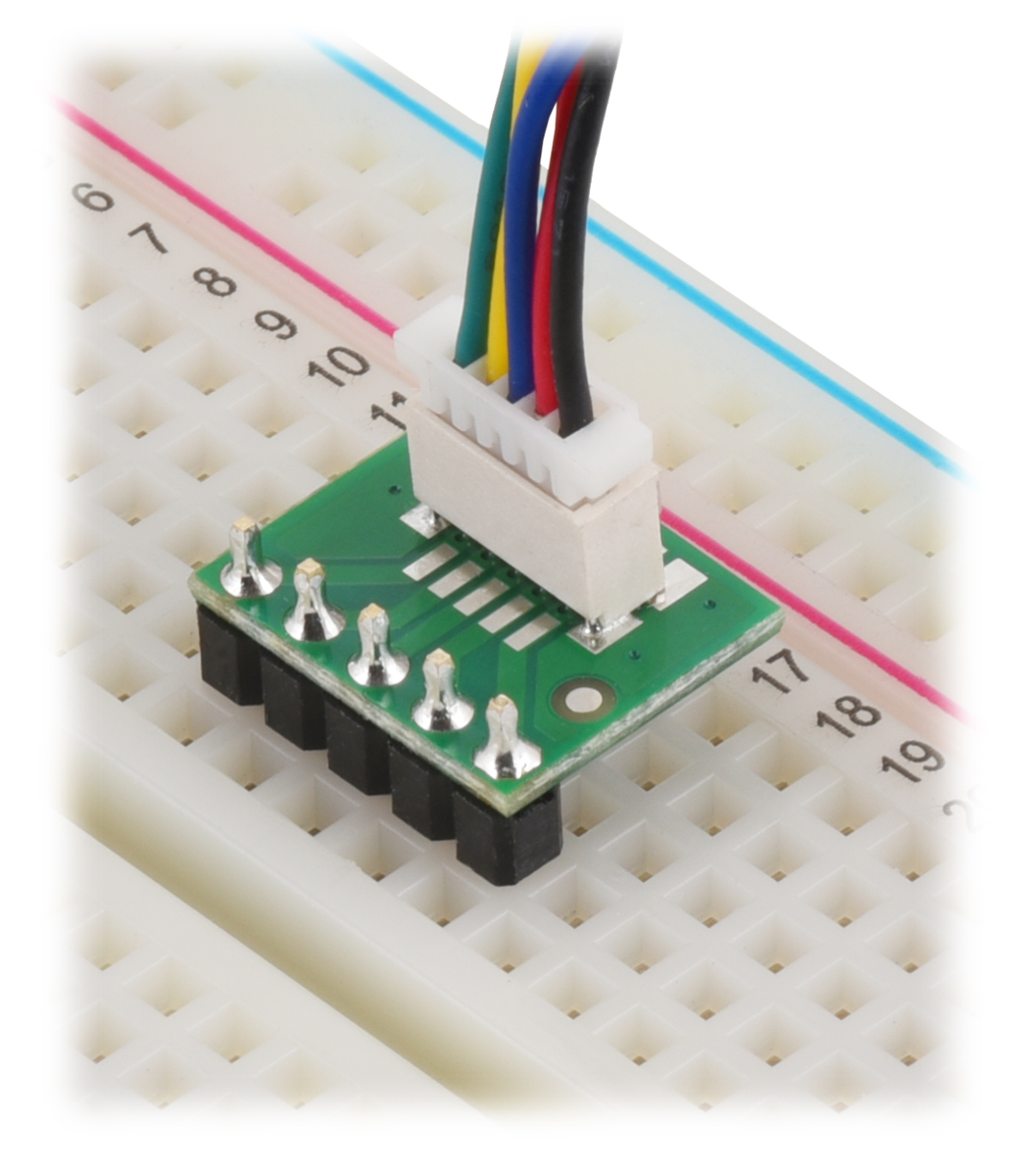 We have compatible JST SH-style connector breakout boards, available in top-entry and side-entry versions, that work as adapters between these cables and breadboard-compatible 0.1″-pitch through holes:
