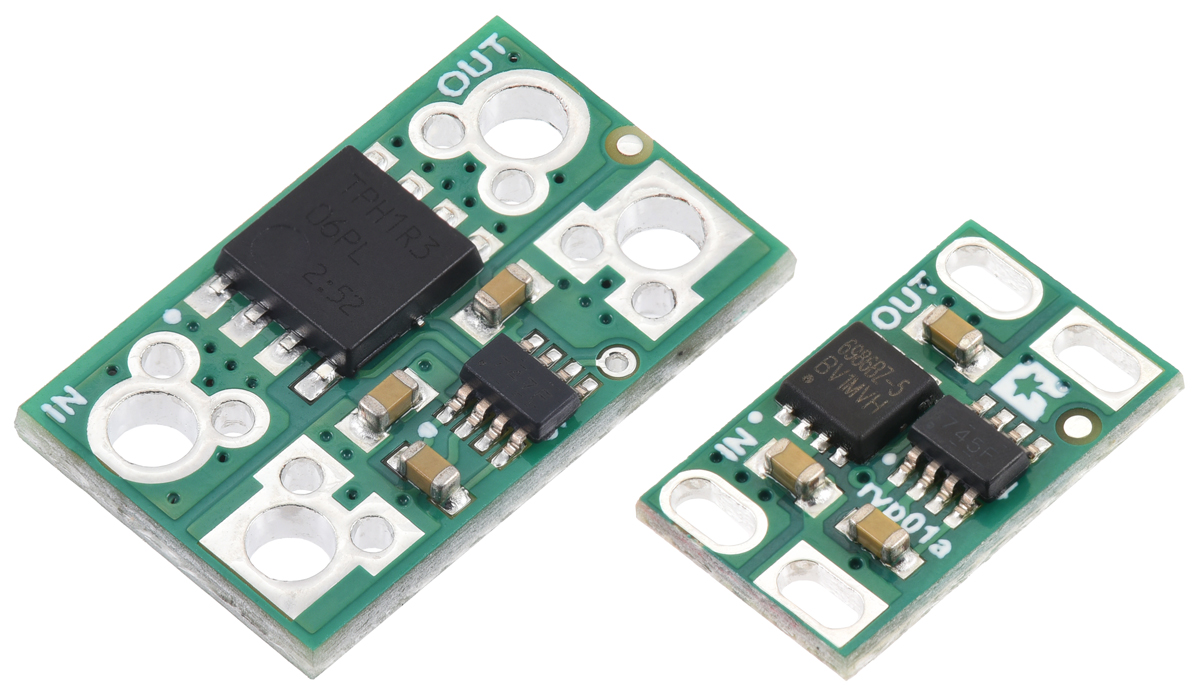 | Ideal diode pair for ORing power | 6 A per channel | < 10 mΩ | 0.75″×0.775″ | $7.95 | #5398 |