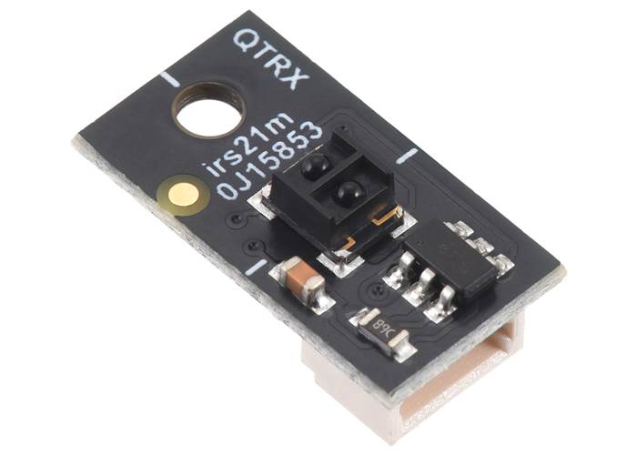 This sensor uses an IR LED and a phototransistor to measure the light reflected from nearby surfaces. It operates from 2.9–5.5 V, with dimmable brightness control independent of the supply voltage. The optimal range is <5 mm, but it can detect high-reflectance objects out to around 30 mm. This version features a high-performance, low-current QTRX sensor with lenses and a connector that works with our 4-pin JST SH-style cables (compatible with SparkFun’s Qwiic and Adafruit’s STEMMA QT cables, but the interface is not I²C).