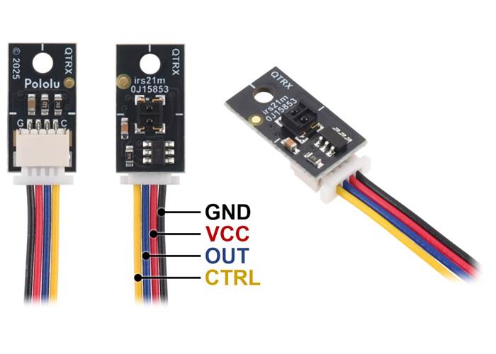 Note: With the exception of the 1-channel QTR/QTRX/QTRXL-MD-01x-S versions with side-entry connectors, these QTR modules do not ship with any headers or connectors included, so you will need to supply your own or solder wires directly to the board to use them. See our selection of male headers, female headers, and pre-crimped wires for various connector options.
