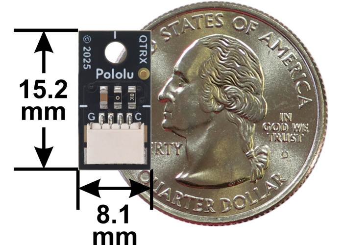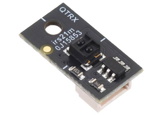 This sensor uses an IR LED and a phototransistor to measure the light reflected from nearby surfaces. It operates from 2.9–5.5 V, with dimmable brightness control independent of the supply voltage. The optimal range is <5 mm, but it can detect high-reflectance objects out to around 30 mm. This version features a high-performance, low-current QTRX sensor with lenses and a connector that works with our 4-pin JST SH-style cables (compatible with SparkFun’s Qwiic and Adafruit’s STEMMA QT cables, but the interface is not I²C).