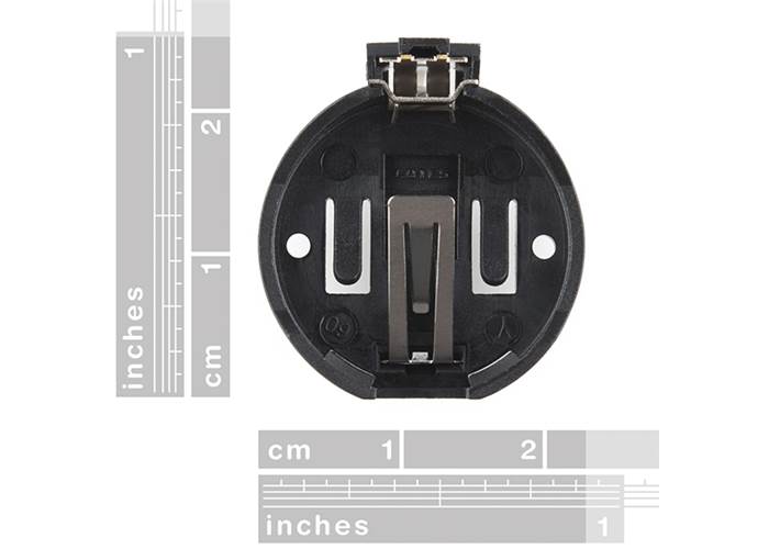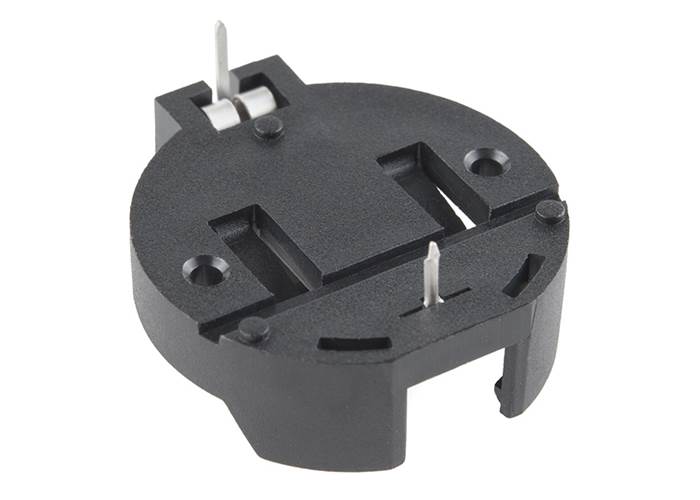 Basic 20mm coin cell holder. Posts can be inserted into 0.1" perf board! Holds the common CR2032 type batteries.Documents:Datasheet