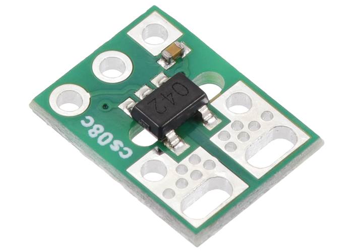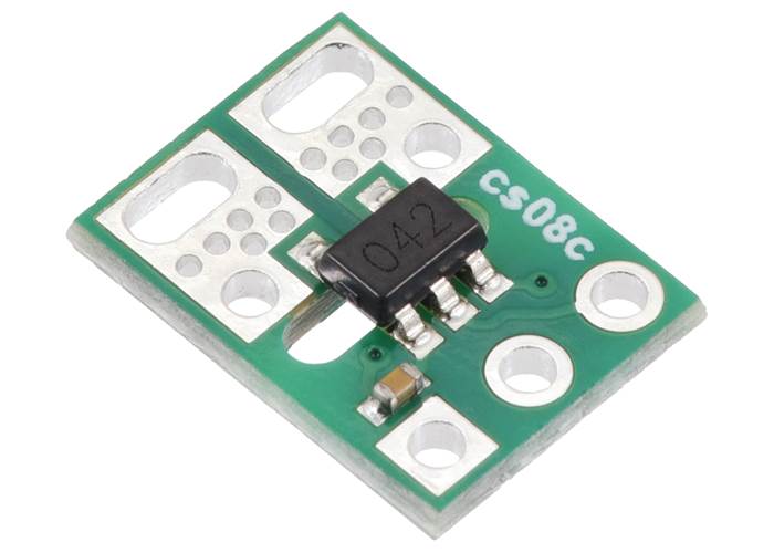 A larger carrier with our standard compact form factor is also available for this sensor IC with room for larger connectors and thicker wires for the high-current path, offering different ways to use or evaluate this current sensor.