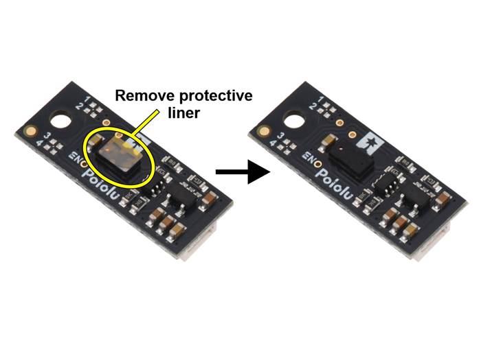The Pololu Digital Distance Sensor might ship with a protective liner covering the sensor IC that must be removed before use.