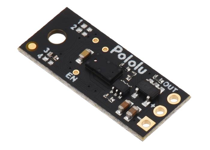 This small lidar-based distance sensor detects the presence of objects within 15 cm (6″) . It has a single digital output that drives low when an object is being detected; otherwise, it is high.