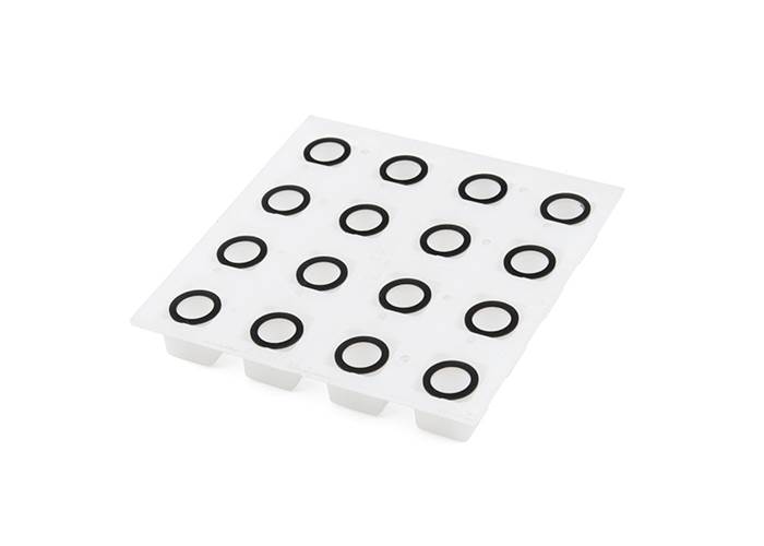 This is a translucent silicon rubber button pad with 16 buttons, the same found in our Simon Soldering Kits.