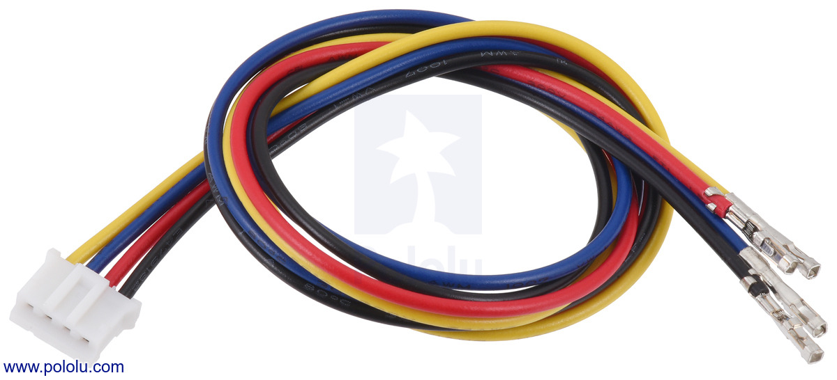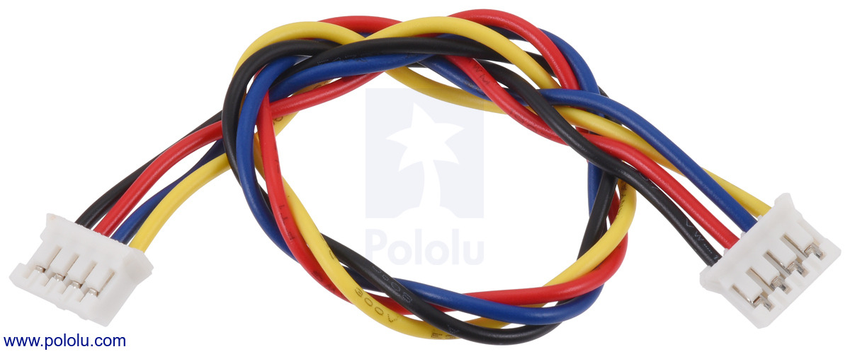 This 4-conductor, 10 cm (4″) cable has 24 AWG wires and 4-pin female JST PH-type connectors (2mm pitch) on both ends