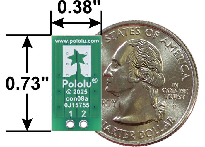 This simple board serves as an adaptor between a JST PH-style 2-pin, top-entry connector and breadboard-compatible 0.1″-pitch through holes. The PH connector, which has a 2 mm pitch and is rated for 2 A, is compatible with our assortment of 2-pin female JST PH-style cables .