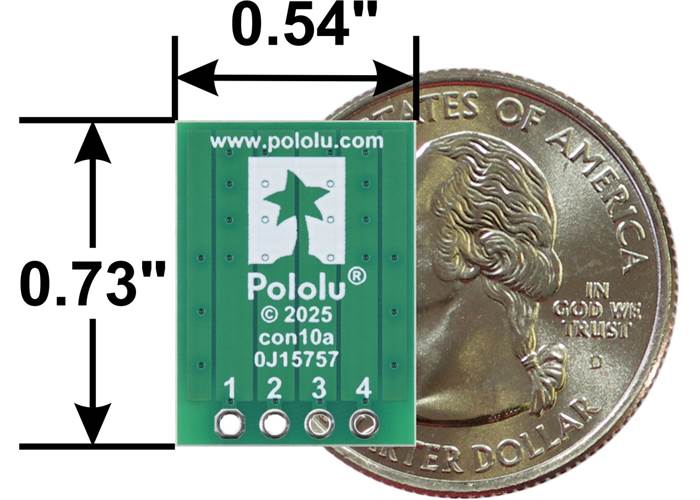 Breakout for JST PH-Style Connector, 4-Pin, bottom view with US quarter for size reference.