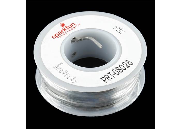Standard 22 AWG solid Grey hook up wire. Use this with your bread board or any project in which you need sturdy wire. Comes in small spools of 25'.