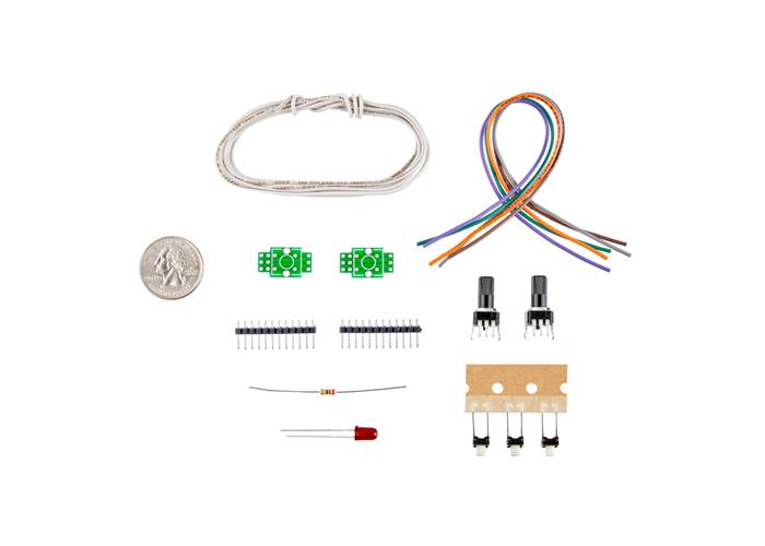 This low-cost parts kit provides the specific pushbuttons, potentiometers, and other components required to build the hardware for the official Teensy Audio Tutorial.