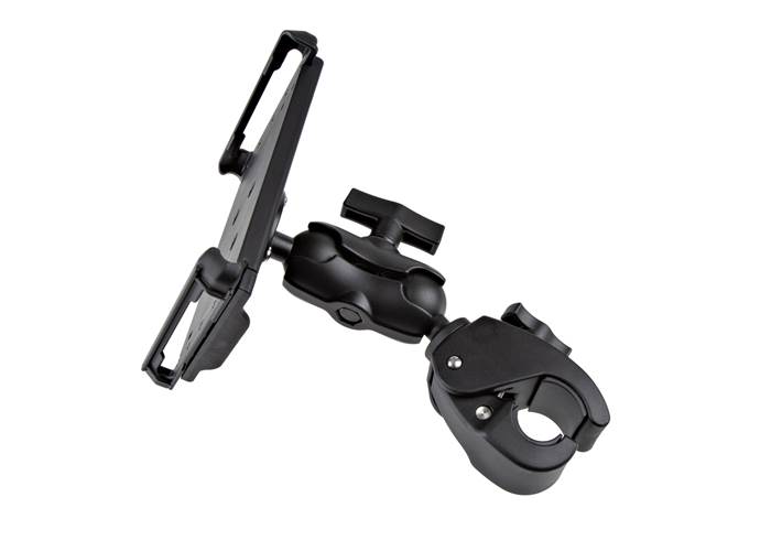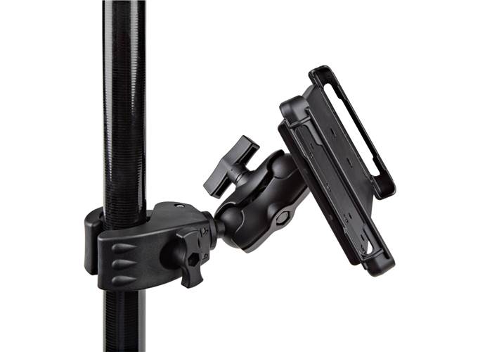 This pole clamp is ideal for attaching an Android or iOS tablet to a surveying pole, automotive bar, or other structural element. The tablet holder is primarily designed for the Galaxy Tab A7/A9 8.7in. series but is spring loaded to handle tablets of various lengths up to 9in. and as short as 7.5". The maximum width the holder can handle is 5.1in. The quick release clamp is ideally suited for our GNSS surveying pole but can open to a maximum of 1.75in.