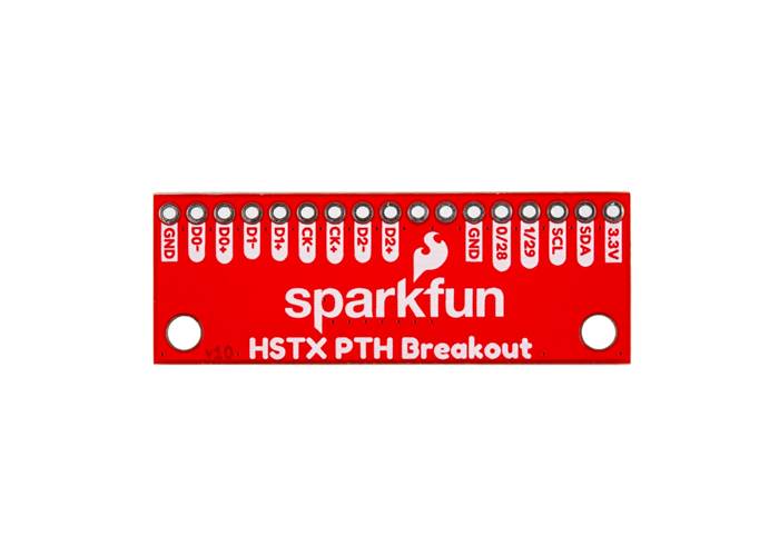 The SparkFun HSTX PTH Breakout is a simple board designed to work with the HSTX connector on the RP2350 IoT RedBoard and the camera and display connectors on a Raspberry Pi 5. It breaks out all 22 pins used on these connectors to a standard 0.1in.-spaced plated through-hole header. These 22-pin connectors interface with a matching flexible cable and normally connect directly to other peripherals (cameras, displays, etc.).