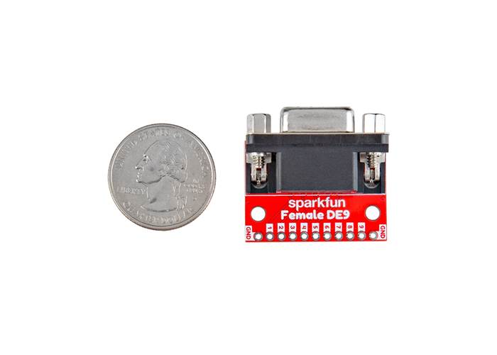 Easily connect with the SparkFun DE9 Female Breakout, a compact board that brings all nine DE9 pins to a convenient 0.1in. spaced header.
