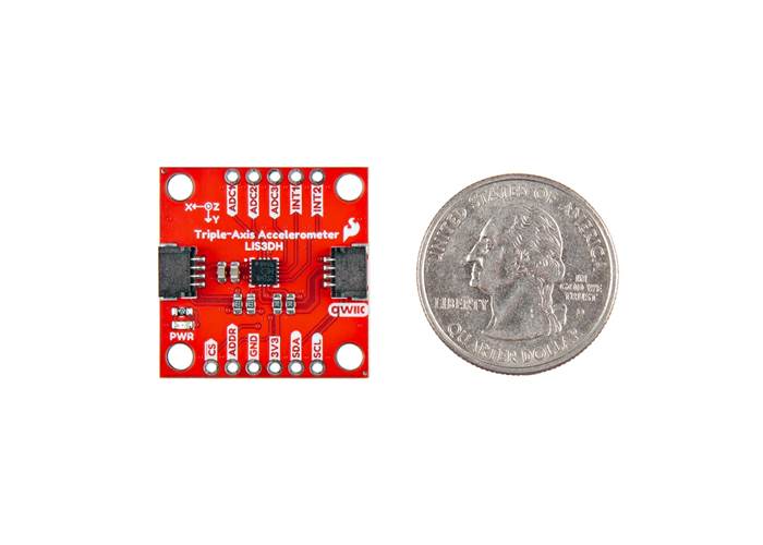 This SparkFun Triple Axis Accelerometer Breakout is a Qwiic-enabled breakout featuring the LIS3DH, a smart, low-power, three-axis, capacitive micro-machined accelerometer with 12-bit resolution, which you can use to add translation detection to your project. This board is classified as a 3DoF or 3 Degrees of Freedom. Inertial Measurement Units (IMUs) can provide additional space location data, such as gyroscopic or magnetometric data. The LIS3DH on this breakout operates under the same principles but offers a few analogue inputs to experiment with, and it includes some built-in movement detection capabilities. This updated version of the LIS3DH breakout features a standard 1in. by 1in. Qwiic breakout with a pair of Qwiic connectors, allowing for easy integration into the Qwiic ecosystem.