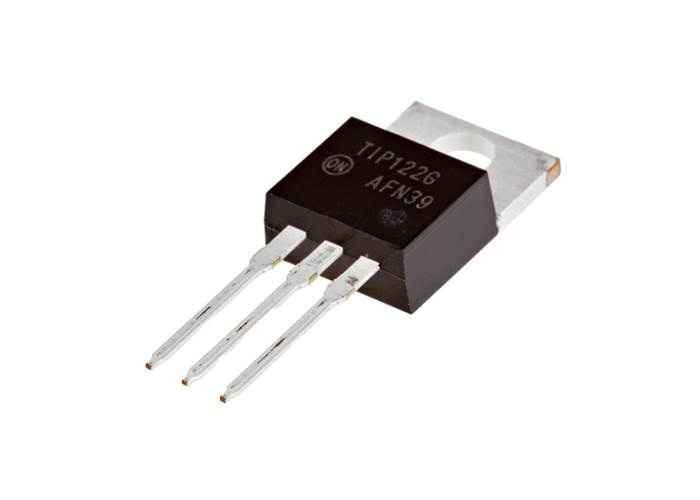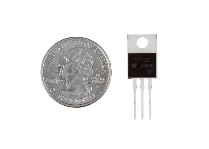 The TIP122G is a 100V/5A NPN Darlington transistor, a high-gain switch ideal for allowing a microcontroller to control heavy loads such as motors, solenoids, or LEDs.