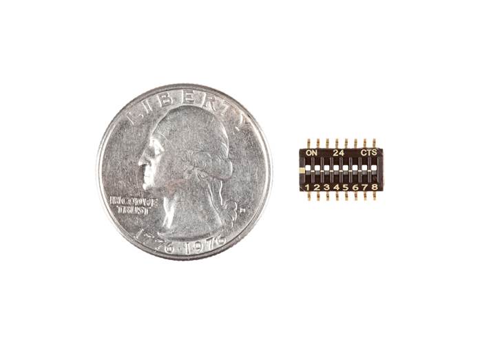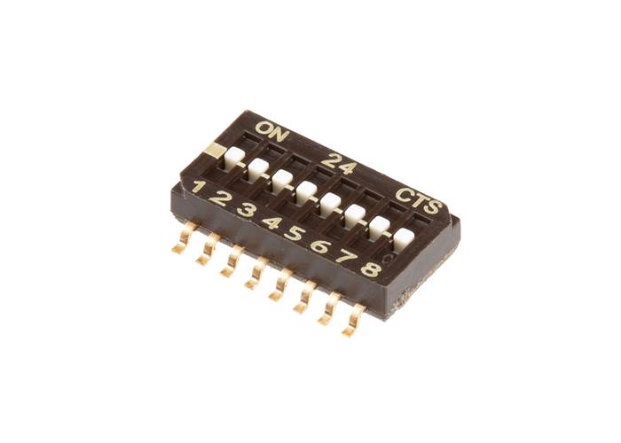 A SMD DIP switch with 8 individual switch positions. Works great as general control switches.