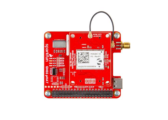 Equip your Raspberry Pi with survey-grade, millimetre-level precision without sacrificing power or space with the SparkFun mosaic-G5 P3 GNSS Flex pHAT. This all-in-one Raspberry Pi peripheral combines our GNSS Flex pHAT with the SparkPNT mosaic-G5 P3 Module, featuring Septentrio's compact, energy-efficient receiver. This kit is the preeminent choice for surveying, robotics, and other IoT applications where size, weight, and power (SWaP) are critical constraints.