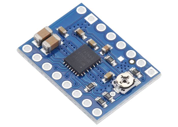This version of the MP6603 Stepper Motor Driver Carrier does not have header pins soldered or included; 0.1″ headers are available separately, as is a version of this driver with header pins already soldered.