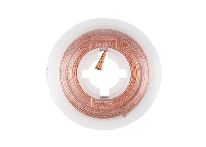 Desoldering braid or desoldering wick is a pre-fluxed copper braid that is used to remove solder, which allows components to be replaced and excess solder (e.g. bridging) to be removed. The soldering iron is applied to the wick as it sits on the solder joint, and when both are brought up to the solder's melting point, the flux is activated and, through capillary action from the braided design, solder is drawn up the wick.