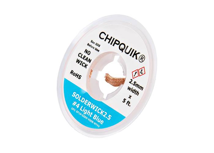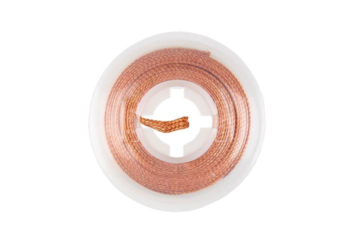 Desoldering braid or desoldering wick is a pre-fluxed copper braid that is used to remove solder, which allows components to be replaced and excess solder (e.g. bridging) to be removed. The soldering iron is applied to the wick as it sits on the solder joint, and when both are brought up to the solder's melting point, the flux is activated and, through capillary action from the braided design, solder is drawn up the wick.