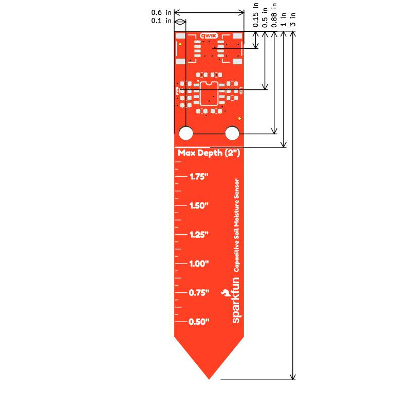 Stop replacing corroded sensors! This Qwiic-enabled capacitive soil moisture sensor uses an internal sensing plate for a longer lifespan and features a built-in depth ruler.