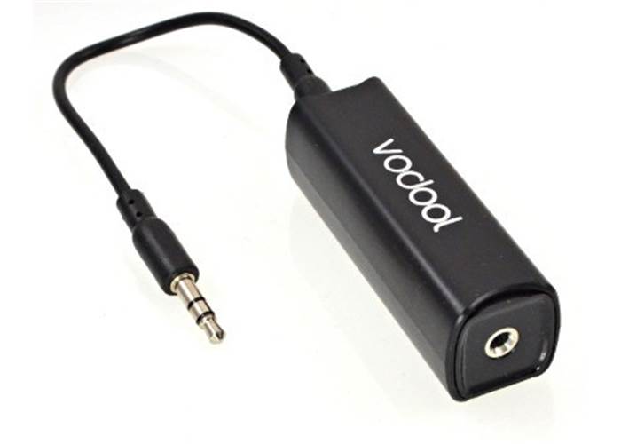 This ground isolator is a simple way to solve ground loop noise. Just plug it between the audio board and the line-in of your amplifier or other equipment.