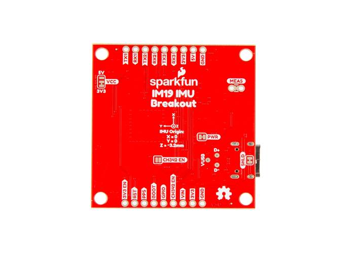 To streamline your physical setup, the 1.7-inch x 1.7-inch PCB matches the footprint of our standard RTK GNSS boards, making it incredibly easy to stack the IM19 directly above or below your existing receiver. Additionally, the IM19 chip is placed exactly at the centre of the board to simplify your physical LEVER_ARM calculations, with a Z-origin of 1.6mm above the top surface (inside the package) and 3.2mm above the bottom surface.