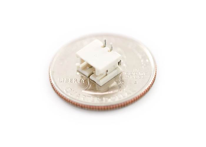 Two pin, compact surface mount connector. We really like the solid locking feeling and high current rating on these small connectors.