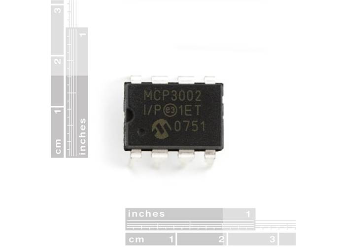 The MCP3002 has a 10-bit analogue to digital converter (ADC) with a simple to use SPI interface. Use this IC if your microcontroller does not have an ADC or have enough ADC lines. A great chip when you need to add additional ADC lines.