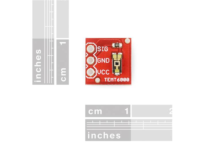 Basic breakout board for the TEMT6000 Ambient Light Sensor. Only what you need, nothing you don't. Sensor acts like a transistor - the greater the incoming light, the higher the analogue voltage on the signal pin.