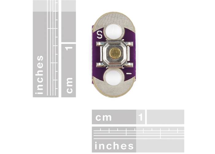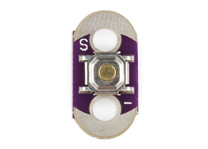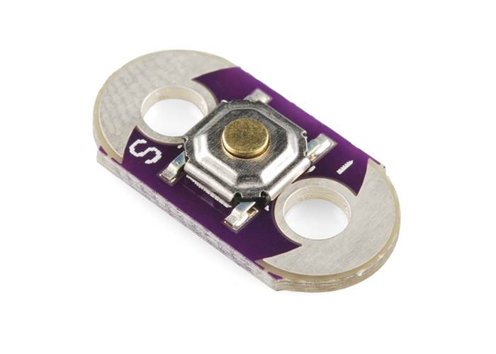 We designed this board to give the user a low profile button without any sharp edges. Button closes when you push it and opens when you release (momentary push button). LilyPad is a wearable e-textile technology developed by Leah Buechley and cooperatively designed by Leah and SparkFun.
