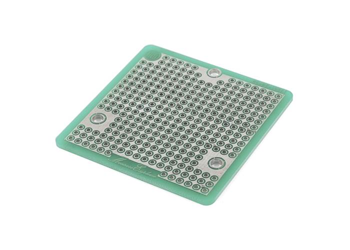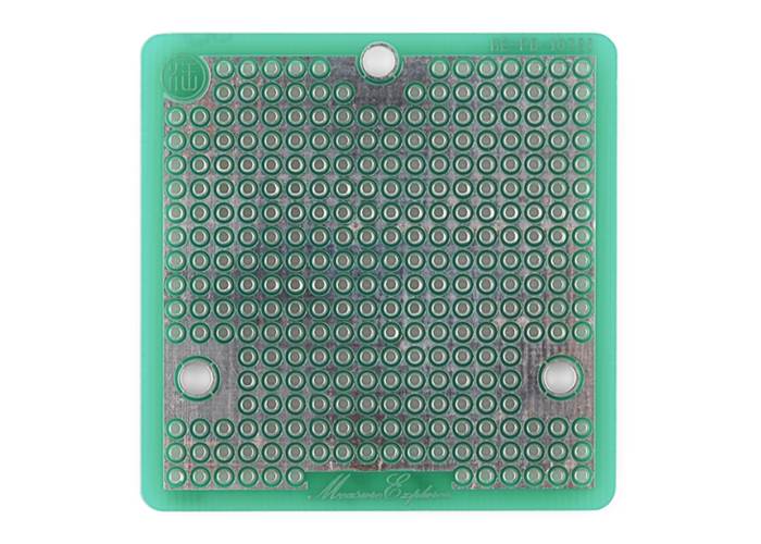 This is a very simple but handy, 2" square, double sided perf board. Standard 0.1" spacing with a 4-40 (3mm) holes for mounting. Great for quickly prototyping stackable circuits.