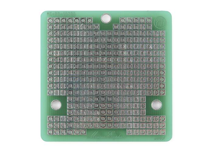 This is a very simple but handy 2" square double sided perf board. Standard 0.1" spacing with a 4-40 (3mm) holes for mounting. Great for quickly prototyping stackable circuits.