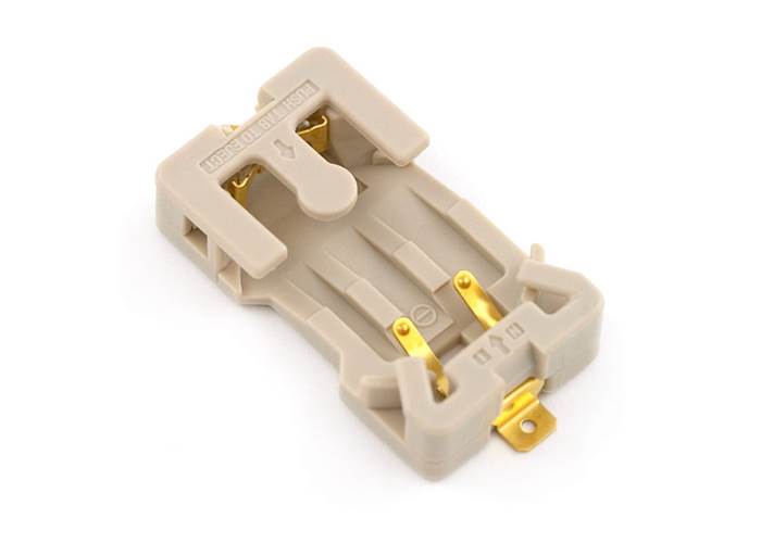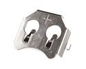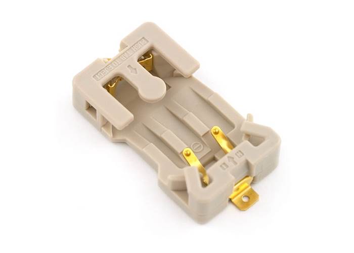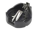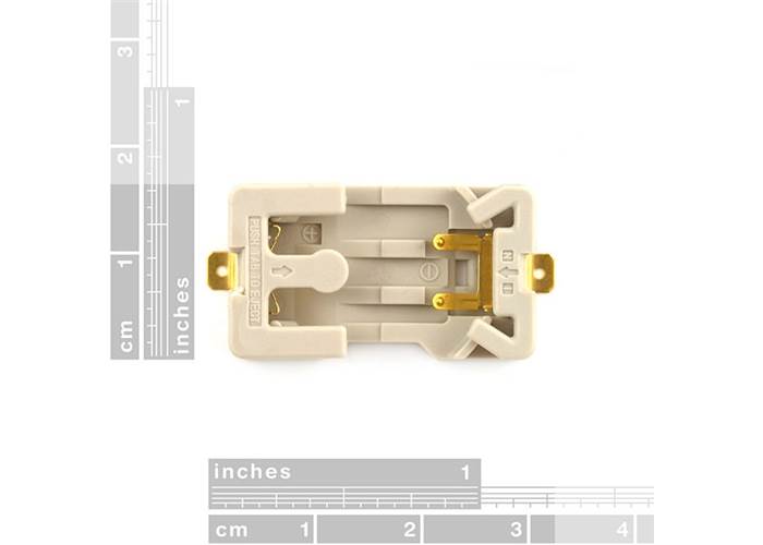 This is a coin cell holder for the common CR2032 type battery. The holder has a neat pop-in, pop-out feature that makes changing the battery easy. The feet of the holder have a small hole that allow it to be sewn without modification.