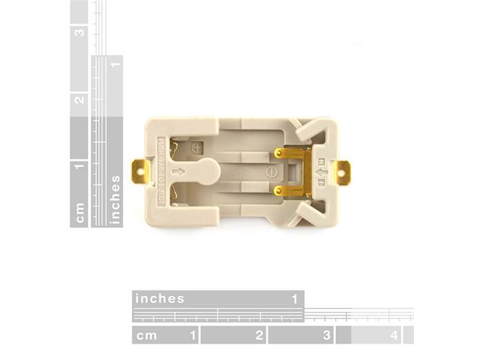 This is a coin cell holder for the common CR2032 type battery. The holder has a neat pop-in pop-out feature that makes changing the battery easy. The feet of the holder have a small hole that allow it to be sewn without modification.