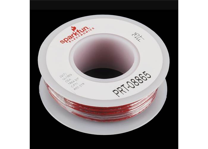Standard 22 AWG stranded red wire. Use this for soldering wire or any project in which you need flexible wire. Comes in small spools of 25'.