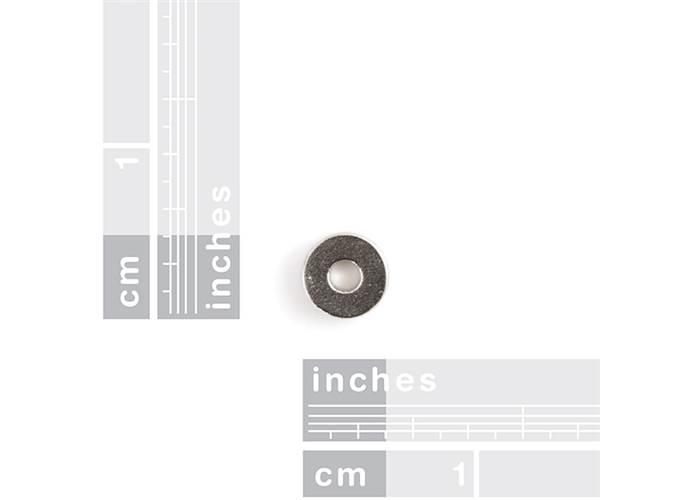 These are small rare earth magnets - 3/16" rings. Composed of Neodymium/Iron/Boron (NdFeB) these magnets are curiously strong and make for a great way to attach tools to a metal workbench hold small children to a fridge and as a trigger for reed switches.