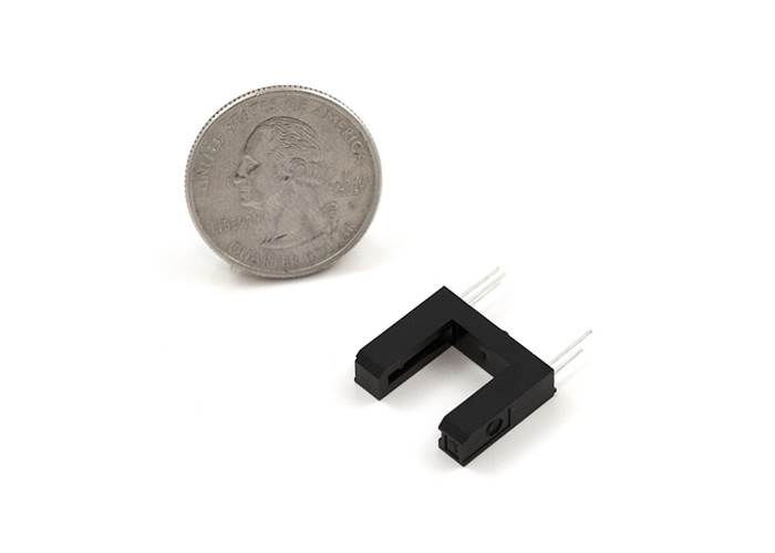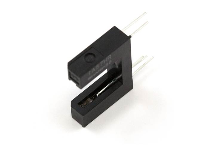Photo interrupter photogate photodiode phototransistor whatever you want to call it this sensor is composed of an infrared emitter on one upright and a shielded infrared detector on the other.